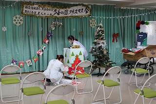 ユニットのクリスマス会の会場も素敵な飾りつけがたくさん!(^^)!