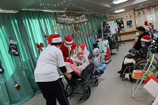 また、職員がサンタクロースに扮し、利用者様にプレゼントをお届けしました♪