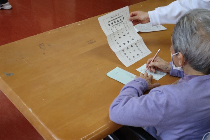 不在者投票を希望される入所者様を施設内の会場までお連れし投票をしていただきました。