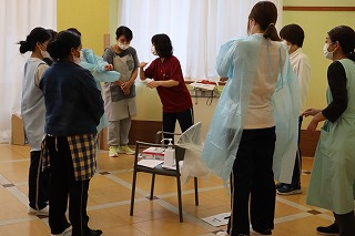 委員会のメンバーに指導受けながら、みなさん真剣に体験していますね。