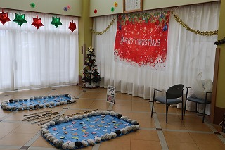 ユニットのクリスマス会の会場も素敵な飾りつけがたくさん!(^^)!
