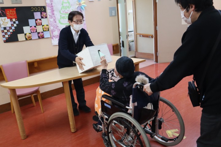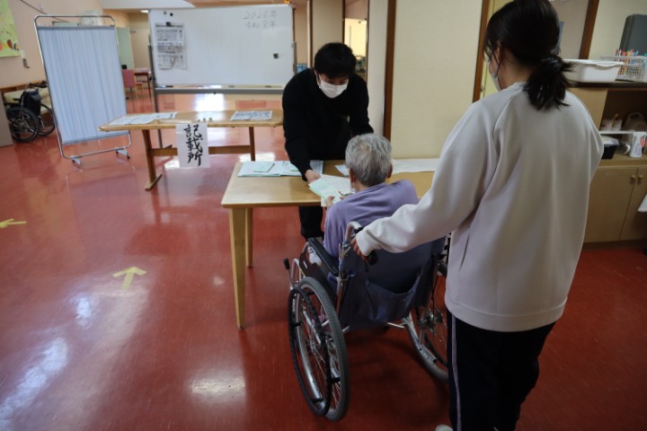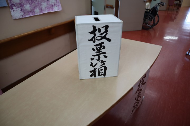 不在者投票を希望される入所者様を施設内の会場までお連れし投票をしていただきました。