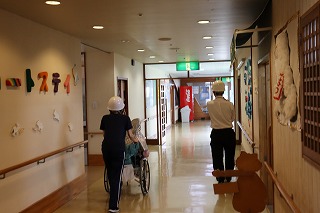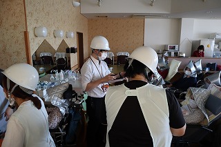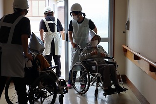 2階のご利用者様は、スロープ使用し避難場所へ向かいます。